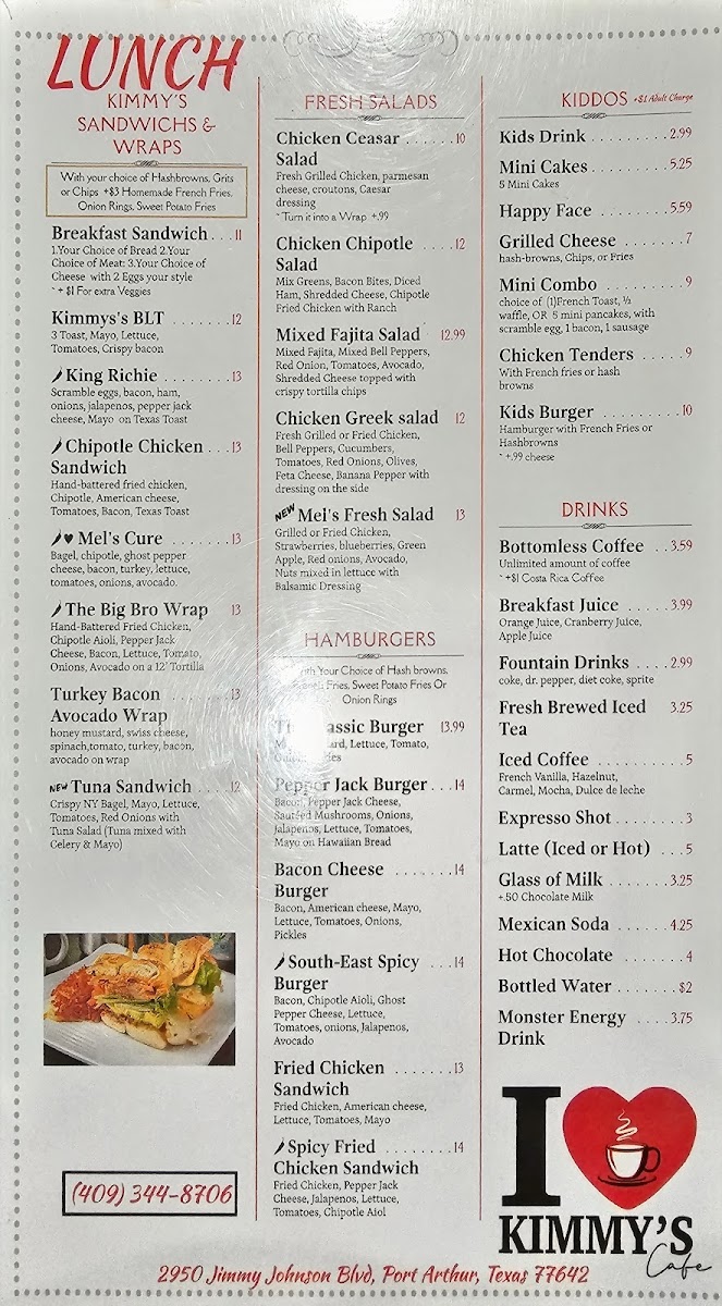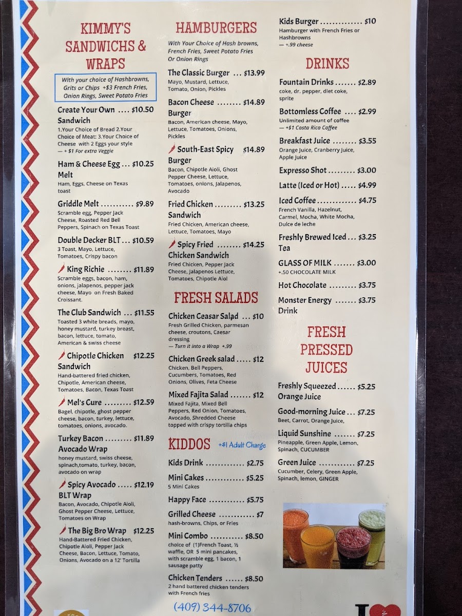 6 egg omelet with cheese +$1 for each extra veggie + $3 bacon, sausage, ham, chorizo, chicken, beef, steak